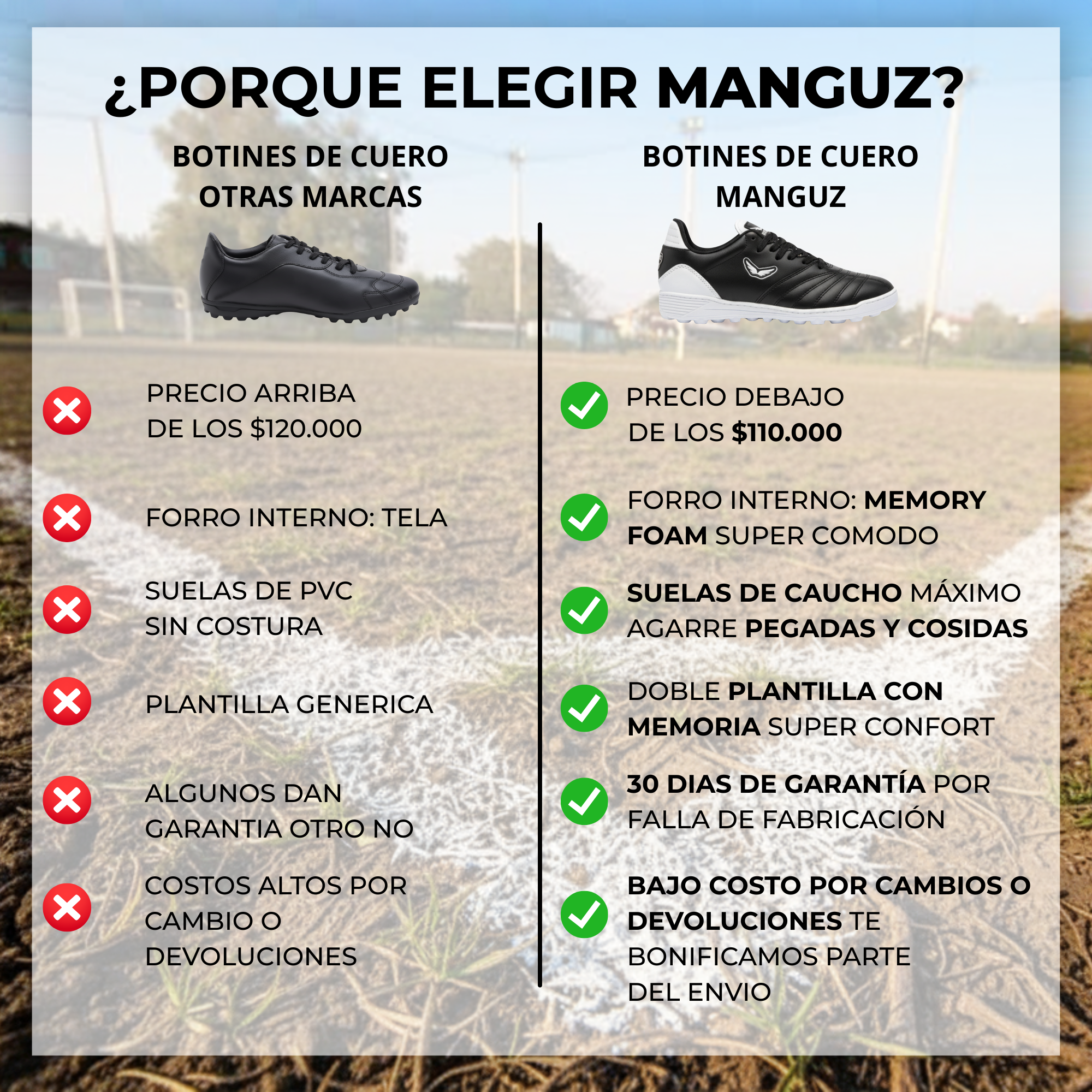 Nuestro modelo Manguz Hunter Premium combina materiales de alta durabilidad con comodidad total, ideal para potrero, sintético o cualquier cancha donde la pelota no se negocia.